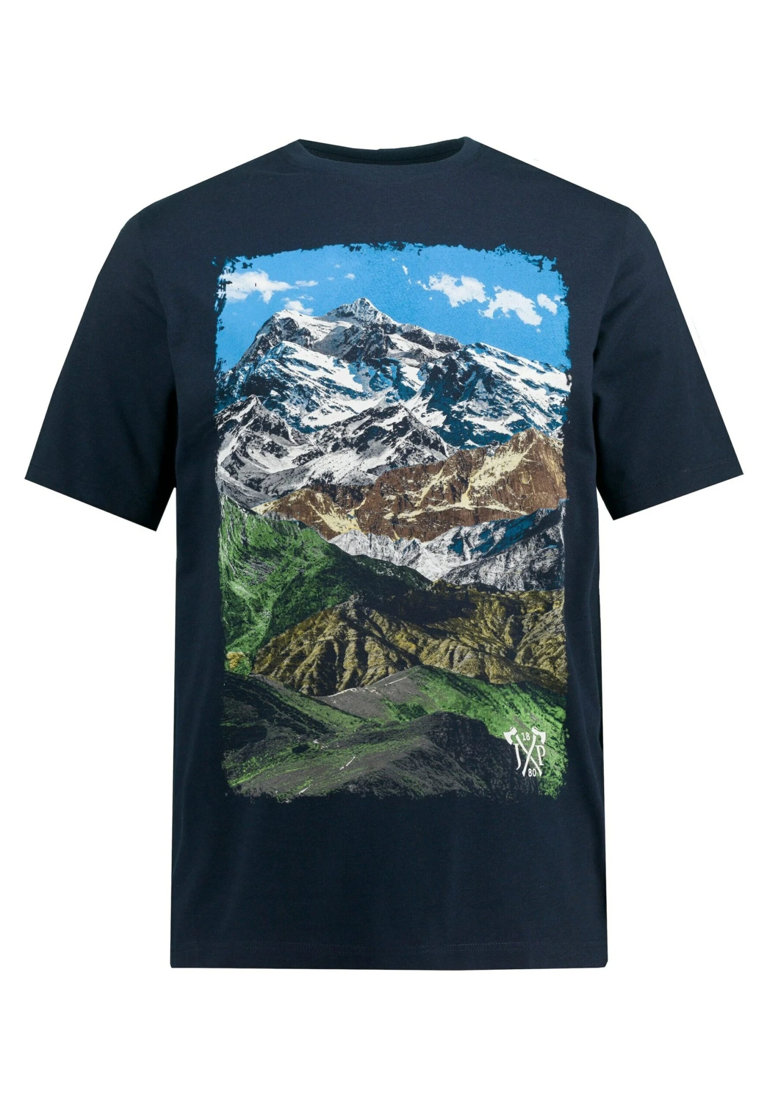 JP1880 Halbarm Vintage Look Rundhals – T-Shirt Print – Navy Blau